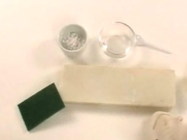 Нам потребуется:перчатки, жесткая губка, воск, раствор щавелевой кислоты, хлопчатобумажная ткань, маска.